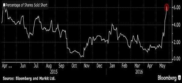 W ciągu zaledwie miesiąca ilość pozycji nastawionych na przecenę jednego z głównych funduszy indeksowych opartych na chińskich akcjach skoczyła pięciokrotnie. Obecnie krótkie pozycje CSOP w funduszu FTSE China A50 ETF, bo o nim mowa, odpowiadają za 6,1 proc. wszystkich jego jednostek. To może być zła wróżba, ponieważ udział krótkich pozycji ostatnio równie wysoki był w kwietniu ubiegłego roku, czyli od przedednia załamania, które doprowadziło do fali wyprzedaży na globalnych parkietach.
