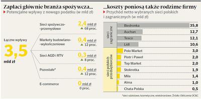 — Pomysłodawca podatku nie zauważa, że duża część handlu sieciowego to są polscy przedsiębiorcy, którzy często z sukcesem konkurują z wielkimi sieciami zagranicznymi. Do jednego worka trafią i jedni, i drudzy, i duzi, i mali — zwraca uwagę Marek Zdziech. Nie poprawi się także pozycja polskiego kapitału, który nie będzie objęty nową daniną, bo do kasy państwa podatku nie wpłacą zarówno tacy giganci handlu hurtowo-detalicznego np. Eurocash (16,5 mld zł przychodu) czy Makro (7,8 mld zł), jak też rodzime sieci Specjał (6,4 mld zł) czy Bać-Pol (0,9 mld zł).