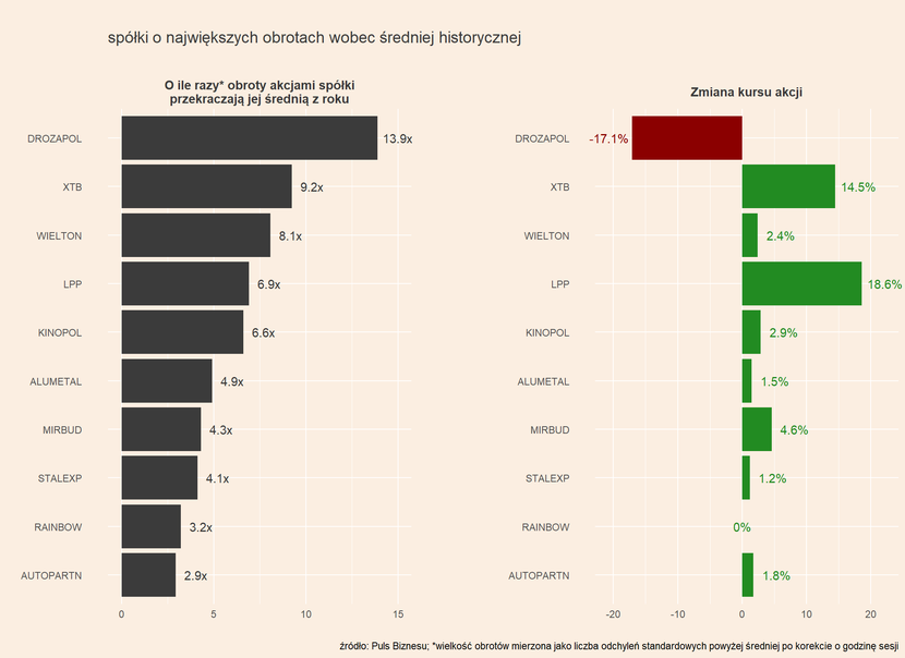 Na szerokim rynku uwagę zwraca skok notowań XTB po publikacji rekordowych wyników za I kwartał oraz załamanie kursu Drozapolu, który nie chce podzielić się z akcjonariuszami zyskiem za ubiegły rok. Korekta dopadła też Sunex (przedstawił wyniki za 2022 r., a w rozmowie z PB perspektywy na kolejne).