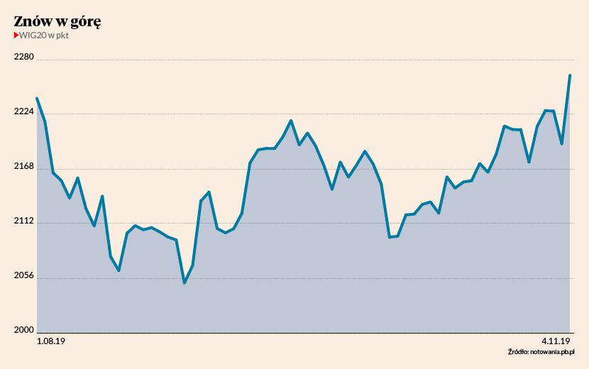 — Wzrost indeksu WIG20 o ponad 3 proc. to pokłosie tego co się działo przez ostatni weekend. Przede wszystkim zapowiedzi porozumienia handlowego między Chinami a krajami Stowarzyszenia Narodów Azji Południowo-Wschodniej (ASEAN), co mogłoby stworzyć największą na świecie strefę wolnego handlu. Do tego doszły nadzieje na przygaszeniesporu handlowego między Stanami Zjednoczonymi a Chinami. Takie informacje naturalnie pomagają rynkom wschodzącym, a Polska do tego grona należy. Nasze akcje były też w ostatnich miesiącach mocno przecenione. Stąd teraz wzrost spółek typowo cyklicznych, jak KGHM, czy wcześniej mocno wyprzedawanych, jak energetyka i banki — komentuje Robert Maj, szef działu analiz Ipopemy Securities.