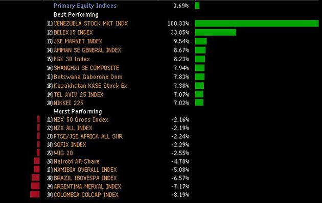 Gorsze wyniki spośród 93 rynków monitorowanych przez Bloomberga dały tylko giełdy brazylijska, argentyńska, kolumbijska i dwa parkiety afrykańskie. Inwestorzy handlujący w Sao Paulo obawiają się, że brazylijska gospodarka wpadnie w recesję, po tym jak wstrząsnął nią korupcyjny skandal w państwowym gigancie naftowym Petrobras. Główny indeks Bovespa, który od 2009 r. nie zakończył żadnego roku zwyżką większą niż 8 proc., w maju stracił 6,6 proc. (wynik w złotych, po uwzględnieniu dywidend).