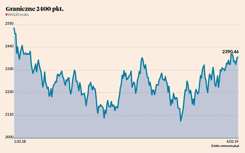— Z perspektywy technicznej, 2400 pkt. jest ważnym poziomem, na którym zatrzymały się wzrosty w połowie 2018 r. Trwałe wyłamanie tego poziomu — czyli utrzymanie się powyżej 2420 pkt. — powinno otworzyć drogę do poziomu nawet w okolicy 2600 pkt., czyli kilkuletnich maksimów — wtóruje mu Piotr Jaromin, analityk X-Trade Brokers DM.