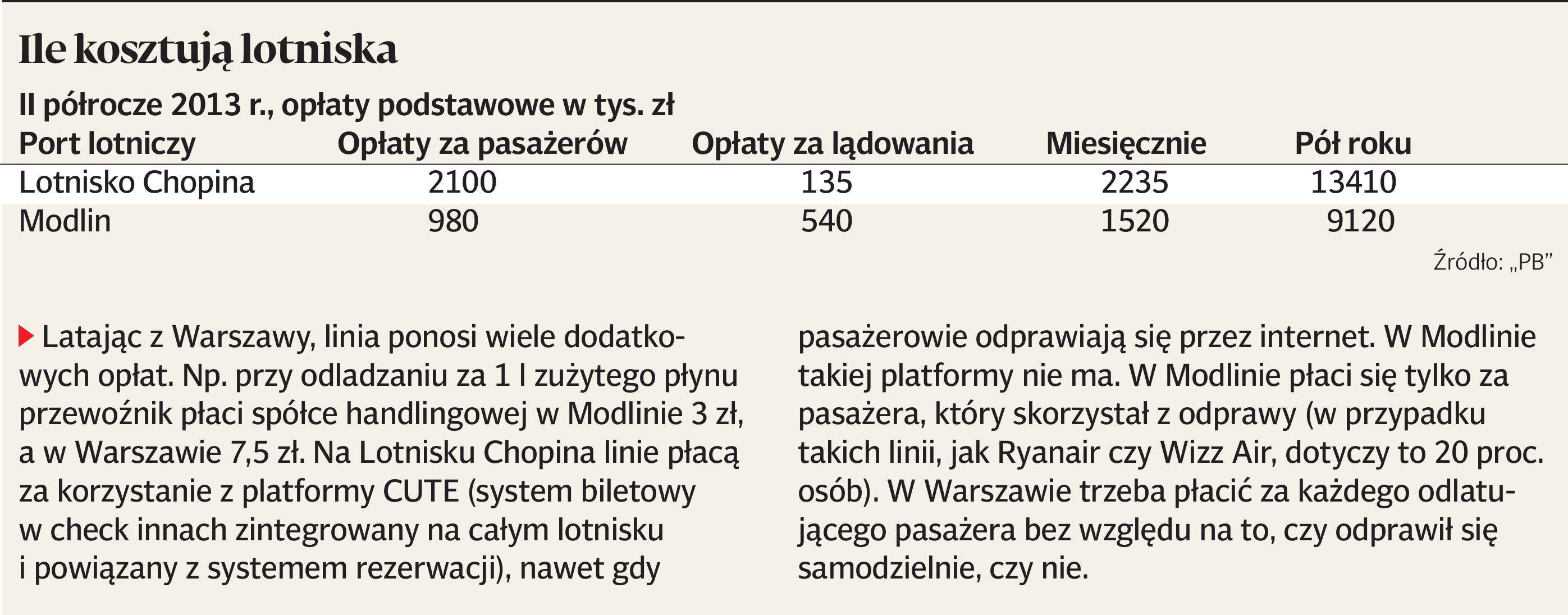 Choć podstawowe opłaty w Warszawie są w skali roku o 8 mln zł wyższe niż w Modlinie, a do tego dochodzą jeszcze inne płatności (patrz infografika), Wizz Air uważa, że Lotnisko Chopina i tak okaże się tańsze.