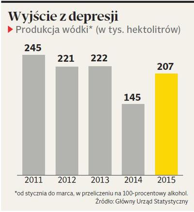 W pierwszym kwartale tego roku wyprodukowaliśmy prawie o 7 proc. mniej wódki niż w 2013 r. Ubiegły rok mocno wypaczył statystyki, bo zapowiedziana z kilkumiesięcznym wyprzedzeniem podwyżka akcyzy (obowiązująca od stycznia 2014 r.) sprawiła, że dystrybutorzy i handlowcy porobili solidne zapasy produktów przed końcem roku, a potem nastała wielka posucha. W efekcie w porównaniu z pierwszymi trzema miesiącami ubiegłego roku produkcja urosła o 43 proc. po 35-procentowym spadku rok wcześniej.