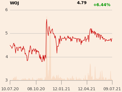 W I kw. 2021 r. spółka miała 53,6 mln zł przychodów (+1,9 proc. r/r) – sprzedaż w sklepach stacjonarnych spadła o 38,8 proc., ale w hurcie wzrosła o 62,9 proc. Wojas odnotował 3,9 mln zł straty na poziomie netto i 5,1 mln zł operacyjnej. Rok temu było to w obu przypadkach ok. 8,5 mln zł.