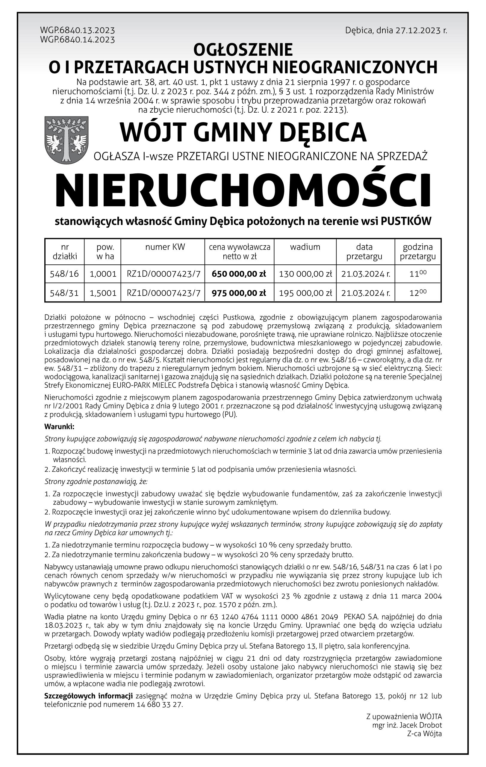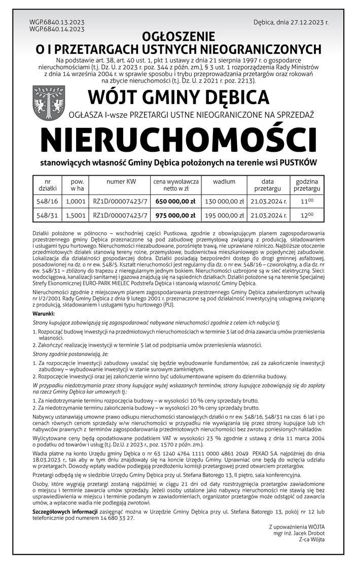 Wójt Gminy Dębica ogłasza Komunikat partneraopublikowano: 2024-01-05 15:34PosłuchajZostań subskrybentemi słuchaj tego oraz wielu innych artykułów w pb.pl