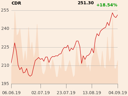 Średnia z cen docelowych z 18 rekomendacji, widniejących z bazie agencji Bloomberg to 246,05 zł. Kurs na GPW przekracza już 250 zł.