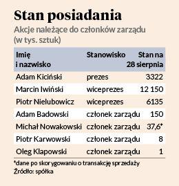Michał Nowakowski, członek zarządu CD Projektu, sprzedał w transakcjach sesyjnych 63,5 tys. akcji po średniej cenie 165,74 zł. To dwie trzecie pakietu, jakim menedżer dysponował pod koniec sierpnia. Łączna wartość transakcji to 10,5 mln zł. Na tle kapitalizacji spółki — to wciąż grubo ponad 15 mld zł — to niewiele, ale wystarczyło, by sygnał ten inwestorzy giełdowi potraktowali jako pretekst do sprzedaży. Kurs spadał na sesji 18 października o ponad 5 proc. W czerwieni notowania sa jednak już od dwóch miesięcy, w trakcie których akcje potaniały o około 30 proc. Przyczyn jest bez liku.