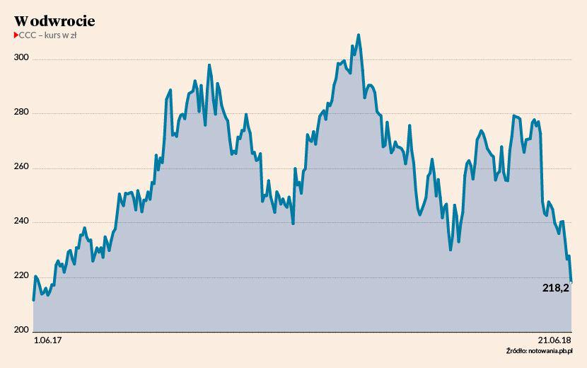 Ostatnie półrocze nie było najlepsze dla spółki, której kurs negatywnie wyróżniał się na tle i tak już bardzo słabego rynku. Od styczniowego szczytu akcje potaniały o prawie 30 proc. Nic jednak nie dzieje się bez powodu, a w przypadku CCC chodzi o słabe wyniki w pierwszym kwartale. Choć jest to sezonowo najgorszy okres dla spółki, to przychody na poziomie 694 mln zł, czyli mniejsze od zeszłorocznych, oraz strata wynosząca 145 mln zł wobec straty w wysokości 16 mln zł rok wcześniej mogły wystraszyć inwestorów.