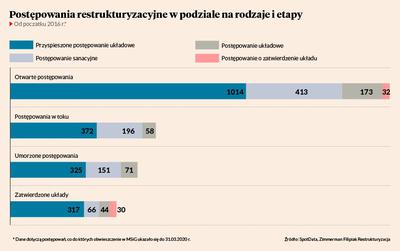 Generalnie od 1 stycznia 2016 r. do 31 marca 2020 r. z przewidzianych przez prawo restrukturyzacyjne procedur skorzystało 1631 przedsiębiorstw. Umorzeniem zakończyło się 547 postępowań, a zatwierdzeniem układu — 457. Największą popularnością nieprzerwanie cieszy się przyspieszone postępowanie układowe, które stanowi aż 62 proc. wszystkich restrukturyzacji.