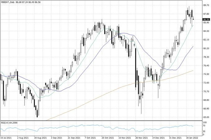 Z pewnością kluczowym tematem na rynku ropy naftowej pozostają obawy o konflikt zbrojny na Ukrainie. Sytuacja wokół tego kraju pozostaje napięta – w ostatnich dniach pojawiały się informacje o ewakuacji części zachodnich dyplomatów z tego kraju, jak również o przygotowaniu wojsk NATO na ewentualne działania w Europie Wschodniej. Dla inwestorów na rynku ropy naftowej otwarty konflikt oznaczałby przede wszystkim duże prawdopodobieństwo narzucenia sankcji na Rosję. Mogłyby obejmować w jakiś sposób tamtejszy sektor naftowy, co jest o tyle istotne, że Rosja to jeden z największych producentów ropy naftowej na świecie.