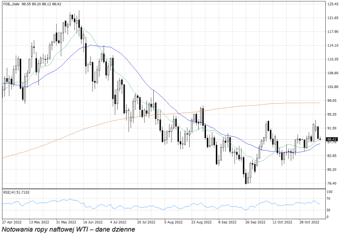 Nadal bardzo duże obawy budzi sytuacja w Chinach. Liczba odnotowanych przypadków zakażeń Covid-19 zwiększa się niepokojąco w wielu chińskich miastach, z Guangzhou na czele. Ten ważny rejon pod kątem przemysłu (i to w skali nie tylko Chin, lecz całego świata) boryka się z poważną falą pandemii – w środę milionom osób z tego rejonu zlecono przeprowadzenie testu na Covid-19. Jeśli w Guangzhou wprowadzony zostanie lockdown, to z pewnością przełoży się on na oczekiwania dotyczące popytu na surowce przemysłowe oraz paliwa – co wpłynie na cenę ropy naftowej negatywnie.