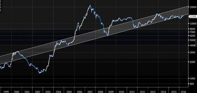 Długoterminowy kanał wzrostowy, opisujące ostatnie 17 lat notowań wskaźnika sWIG80. Źródło: pb.pl, Bloomberg.