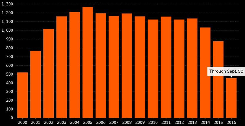 Od początku roku do końca września w skali globu powstało 457 funduszy hedgingowych, wynika z danych Eurekahedge, do których dotarła agencja Bloomberg. Branża, której aktywa sięgają globalnie 2,9 bln USD, zmierza do zamknięcia roku pod względem nowych uruchomień najsłabszym wynikiem od 2000 r. Dotychczasowy wynik to zaledwie 52 proc. liczby funduszy, które powstały w całym ubiegłym roku.