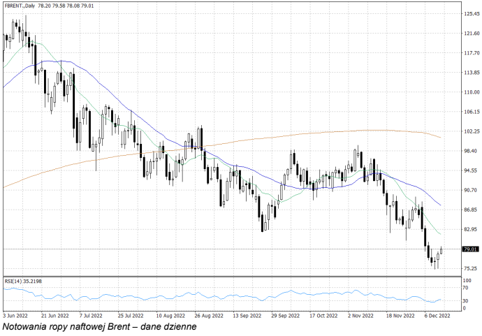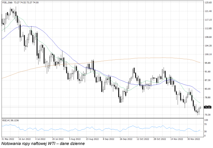 Sytuacja dotycząca ropociągu Keystone, wraz ze znoszeniem restrykcji pandemicznych w Chinach oraz obawami o następstwa nowych sankcji narzuconych przez UE na Rosję, to czynniki, które obecnie pozytywnie wpływają na ceny ropy. Niemniej, istotnym czynnikiem pozostaje także wartość dolara amerykańskiego – jej spadek wczoraj i dziś przekłada się na ceny wielu surowców, z ropą włącznie. Warto pamiętać, że bieżący tydzień przyniesie wiele istotnych decyzji banków centralnych, które poprzez wartość dolara będą przekładać się także m.in. na ceny ropy.