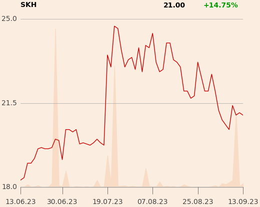 Kurs Skarbca na GPW na sesji w środę, 13 września, wynosił 21 zł.