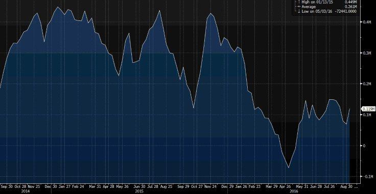 W tygodniu zakończonym w ubiegły wtorek pozycja długa netto utrzymywana przez profesjonalnych zarządzających na parach z udziałem dolara sięgnęła 119 tys. pozycji. Tym samym przewaga pozycji długich nad krótkimi wzrosła o 50 tys., co oznacza największy jej skok od czerwca. Powrót gry pod umocnienie dolara to pokłosie jastrzębich wypowiedzi szefowej Fedu Janet Yellen na sympozjum w Jackson Hole. Spekulacje co do podwyżki stóp jeszcze wrześniowym posiedzeniu Fedu są jednak związane z ryzykiem, wynika z notowań kontraktów na stopę procentową. Choć we wtorek obliczany przez Bloomberga indeks dolara znalazł się najwyżej od dwóch tygodni, to jednak ze względu na gorsze od prognoz dane z amerykańskiej gospodarki prawdopodobieństwo wrześniowego zaostrzenia polityki spadło do 22 proc. z notowanych tuż po sympozjum 42 proc.