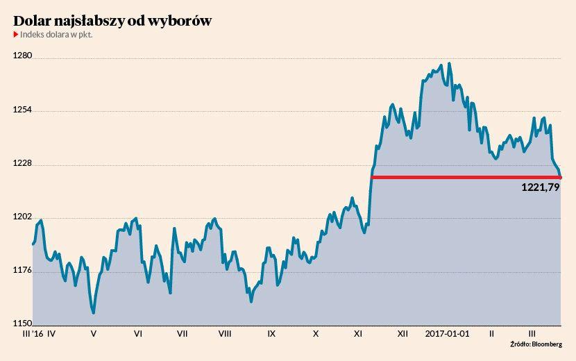 We wtorek obliczany przez Bloomberga indeks dolara spadł do 1222 punktów, co oznaczało jego najniższy poziom od skoku tuż po wyborze Donalda Trumpa na prezydenta. Ta przecena nie zaskoczyła profesjonalnych zarządzających, wynika ankiety przeprowadzonej przez Bank of America ML. Specjaliści wycofali się z gry pod umocnienie dolara, rozpoczętej wraz ze zwycięstwem wyborczym kandydata republikanów, a pozycjonowanie stało się neutralne.