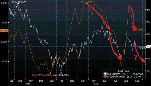 W tygodniu zakończonym w ubiegły wtorek zarządzający funduszami zwiększyli krótkie pozycje na ropie WTI najmocniej od trzech miesięcy. Przy niewielkim spadku pozycji obliczonych na wzrost cen ropy pozycja długa netto zmniejszyła się w porównaniu z poprzednim tygodniem o jedną piątą. To sygnał, że im dłużej przedstawiciele kartelu OPEC dyskutują nad możliwością zamrożenia produkcji, tym mniej inwestorzy wierzą w taki scenariusz, oceniają eksperci, z którymi rozmawiała agencja Bloomberg.