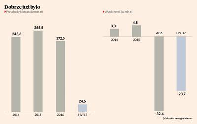 Te słowa nie wytrzymywały jednak starcia z rzeczywistością. Wbrew prawnemu obowiązkowi Matras nie regulował długów powstałych już po otwarciu sanacji (te sprzed niej, warte ponad 100 mln zł, miały być spłacone po zawarciu ewentualnego układu z wierzycielami). Już 18 lipca 2017 r. zadłużenie Matrasa z okresu po otwarciu sanacji sięgało prawie 7,5 mln zł, z czego 4,5 mln zł stanowiły długi, których okres wymagalności przekraczał miesiąc.