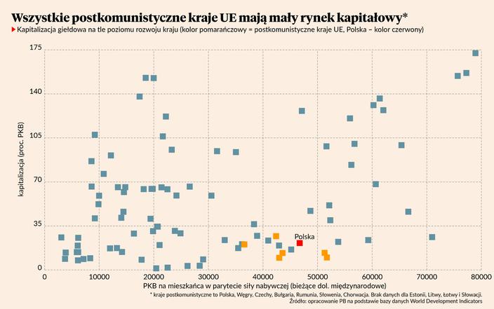 Pojawia się fundamentalne pytanie: czy to, że Polska na kilkadziesiąt lat ugrzęzła w gospodarce centralnie planowanej, sprawia, że tak trudno jest nam teraz rozwinąć rynek kapitałowy? W Polsce mogą działać przecież te same mechanizmy co we wschodnich Niemczech. Polacy mało inwestują w akcje, bo czują pewną niechęć do kapitalistycznego ustroju, np. nie tylko wskutek wpajanej propagandy w czasach PRL, ale też przez pryzmat niewielkich korzyści - a nawet kosztów - z transformacji gospodarczej. Uwagę przykuwa fakt, że generalnie we wszystkich krajach postkomunistycznych, dla których istnieją takie dane, rynek kapitałowy jest mały, jeśli porównać kapitalizację giełdy do PKB na mieszkańca. Czyli za wzrostem gospodarczym, bogaceniem się narodu, poprawą dobrobytu społeczeństwa nie idzie rozwój giełdy.