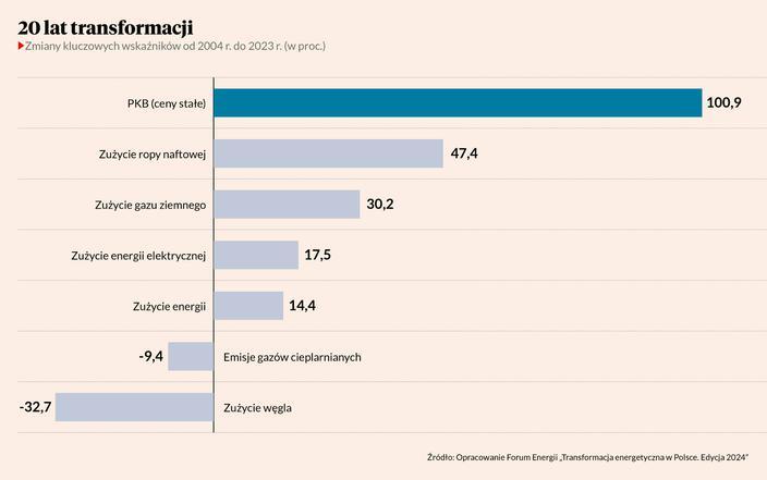 Odnawialne źródła energii stanowią już ponad 40 proc. mocy zainstalowanej w krajowym miksie energetycznym, odpowiadając za 27 proc. całkowitej produkcji energii elektrycznej. W 2024 r. tendencja wzrostowa się utrzyma. Niestety Polska dalej jest jedną z najbardziej emisyjnych gospodarek w Europie. Dekarbonizacja elektroenergetyki postępuje, ale zmiany w pozostałych sektorach gospodarki są dużo wolniejsze. Jest to spowodowane m.in. tym, że produkcja przemysłowa w Polsce spadła o 6 proc. względem zeszłego roku i brak wystarczających środków na projekty dekarbonizujące procesy produkcyjne. Transformacja polskiego przemysłu jest niezbędna do poprawy konkurencyjności, jednak jest bardziej efektem czynników rynkowych niż świadomej koordynacji działań. Potrzeba ambitnej strategii, która stworzy realne wsparcie ekonomiczne i administracyjne.
