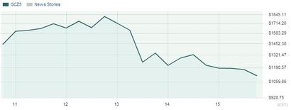 Notowania kontraktów GCZ5 na złoto na NYMEX (via MarketWatch)