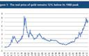 Po pierwsze, obecna wycena złota nie wydaje się tak wysoka, jeśli ją urealnimy, czyli wyeliminujemy inflację dolara. Wówczas kurs złota nie przekracza szczytu z 1980 r.: