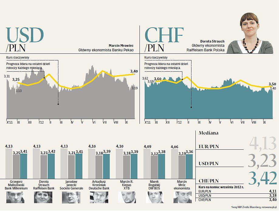 Innego zdania są Marek Rogalski z DM BOŚ i Marcin Mróz, niezależny ekonomista. Co ciekawe, pierwszy jako jeden z niewielu prawidłowo przewidział dość dobre zachowanie złotego we wrześniu (większość oczekiwała wyraźnego osłabienia), a drugi najtrafniej prognozował kursy walut w ostatnich trzech miesiącach.
