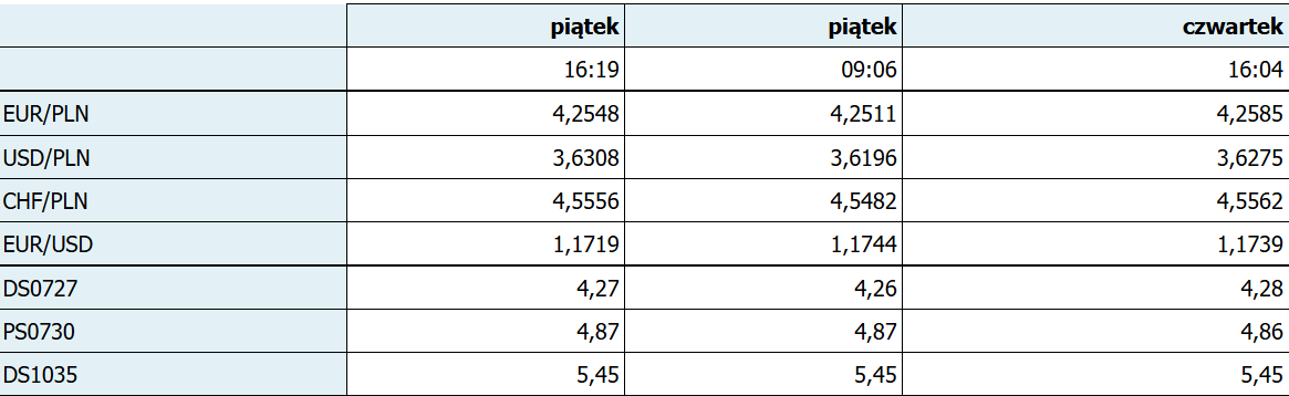 Ok. godz. 16.19 EUR/PLN spadał o 0,04 proc. do 4,2548, a USD/PLN szedł w górę o 0,12 proc. do 3,6308. Z kolei EUR/USD zniżkował o 0,15 proc. do 1,1719.