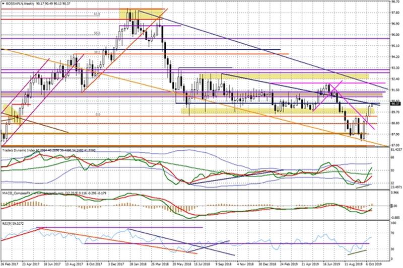 Na koszyku BOSSA PLN widać, że utrzymujemy się cały czas blisko kluczowych oporów. Paradoksalnie może to sugerować – o ile nie dojdzie do odwrócenia się globalnych trendów (wzrost awersji do ryzyka, mocniejszy dolar) – że możemy mieć próbę ich naruszenia w przyszłym tygodniu.