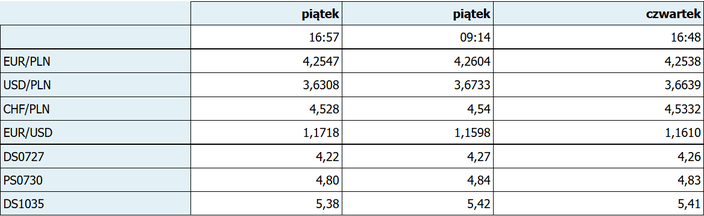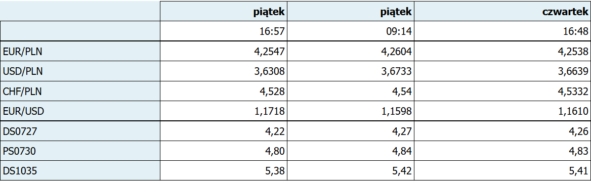 "Jeżeli chodzi o rynek długu, to tutaj nic spektakularnego się nie dzieje. Mamy kontynuację ruchów na dziesięciolatce wokół poziomu 5,42 proc. Trwa to już dwa tygodnie" - powiedział.