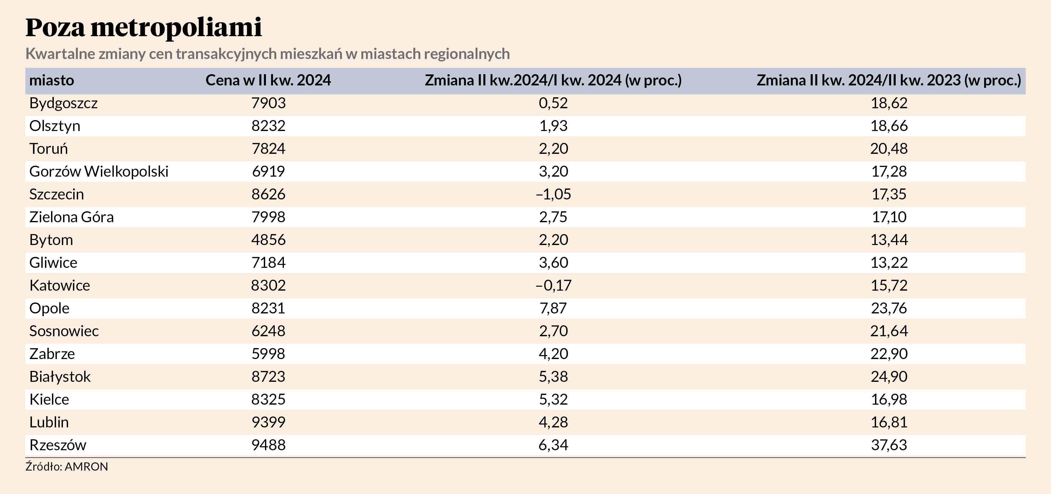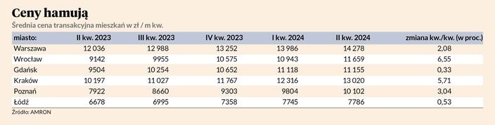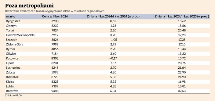 wyniósł 2243 zł, co stanowi wzrost o 0,76 proc. We Wrocławiu nastąpił nawet lekki spadek średniej ceny — o 1,76 proc.