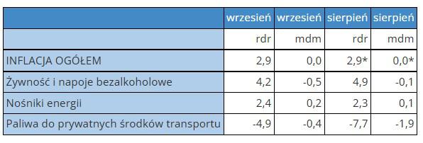 Poniżej poszczególne składniki wskaźnika inflacji za wrzesień i sierpień 2025 r.:
