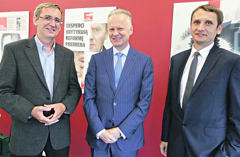 Wzięli w nich udział Andrzej Przybyło, prezes AB (pierwszy z lewej), i Adam Góral, prezes Asseco (w środku), a spotkanie poprowadził Jarosław Dmowski, partner w Boston Consulting Group (po prawej).