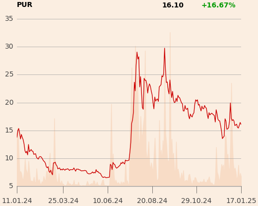 Inwestor odkupił wtedy akcje Pure’a od prezesa spółki Filipa Jelenia. Gdy kurs w kolejnych tygodniach skoczył, przebijając 20 zł za walor, zaczął je sprzedawać na GPW i we wrześniu zszedł pod próg 5 proc.