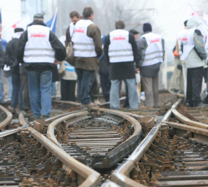 Uczestnicy protestu, ubrani w związkowe kamizelki zablokowali tory tuż przed godz. 10. Mają z sobą transparenty i flagi.