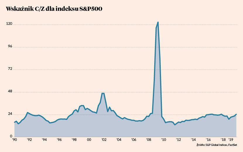 Pomijając epizod z roku 2009 (gdy za sprawą gigantycznych strat banków podczas kryzysu finansowego wskaźnik C/Z na bazie historycznych wyników na jakiś czas utracił rację bytu) drożej było tylko podczas bańki internetowej oraz w styczniu 2018 r. Nawet jeśli odniesiemy bieżącą wartość S&P500 do oczekiwanych zysków spółek na 2020 r., to nadal nie jest tanio. Jeśli indeks rzeczywiście zarobi owe 177 USD, to jego C/Z na bazie oczekiwanych zysków obecnie kształtuje się na poziomie 18,4 — a więc znacznie powyżej średniej za ostatnie 10 lat wynoszącej 14,9. To wartość, którą trudno uznać za niską. Zatem amerykańskie akcje nijak nie mogą uchodzić teraz za „atrakcyjnie wyceniane”. Taki stan przewartościowania amerykańskiego rynku trwa już od czterech lat. Mimo to drogie akcje ku zdumieniu giełdowych niedźwiedzi stają się coraz droższe. I powoli dochodzimy do sytuacji, gdy już mało kto zważa na wyceny.